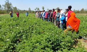 በወረዳው ወርቃት ቀበሌ በአርሶ አደሮች የድንች ማሳ በአማራጭ መስኖ ውሃ አጠቃቀም ላይ የመስክ ምልከታ ተካሄደ።